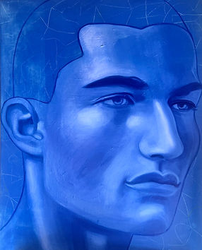 Portrait of a young man in blue (after Botticelli), 2025,, oil and acrylic on canvas, 122 x 91 x 3.5 cm